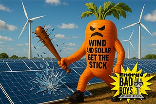 HEADLINE: “Wind and Solar Get the Stick Is it an unjustified war on wind and solar, or is Karma a FAFO?” BY ISAAC ORR and MITCH ROLLING