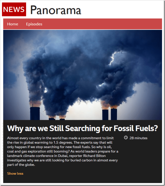 The BBC want to know why the world is still exploring for oil, gas and coal: