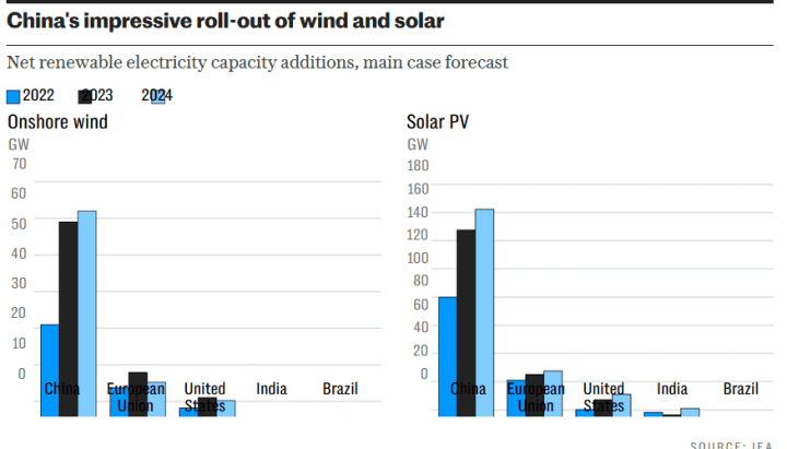 The International Energy Agency says China accounts for 60pc of all new solar and wind power being installed across the world this year and next. This roll-out has combined with a drastic slowdown in China’s rate of economic trend growth and the exhaustion of its Ponzi style property model.