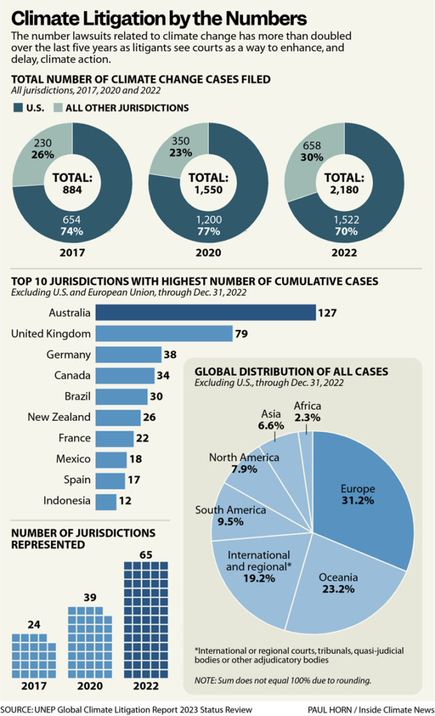 Since 2017, there has been two and a half times more climate litigation across the globe, with the vast majority of cases playing out in U.S. courtrooms.