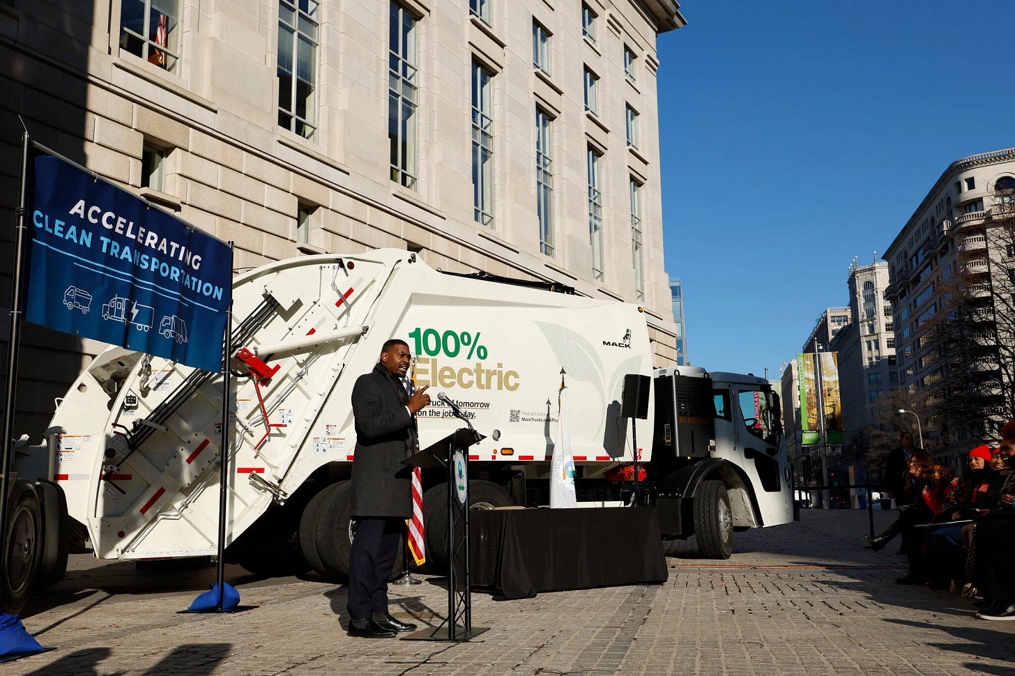 Michael S. Regan, the E.P.A. administrator, at an event announcing new national clean air standards for heavy-duty trucks last month.