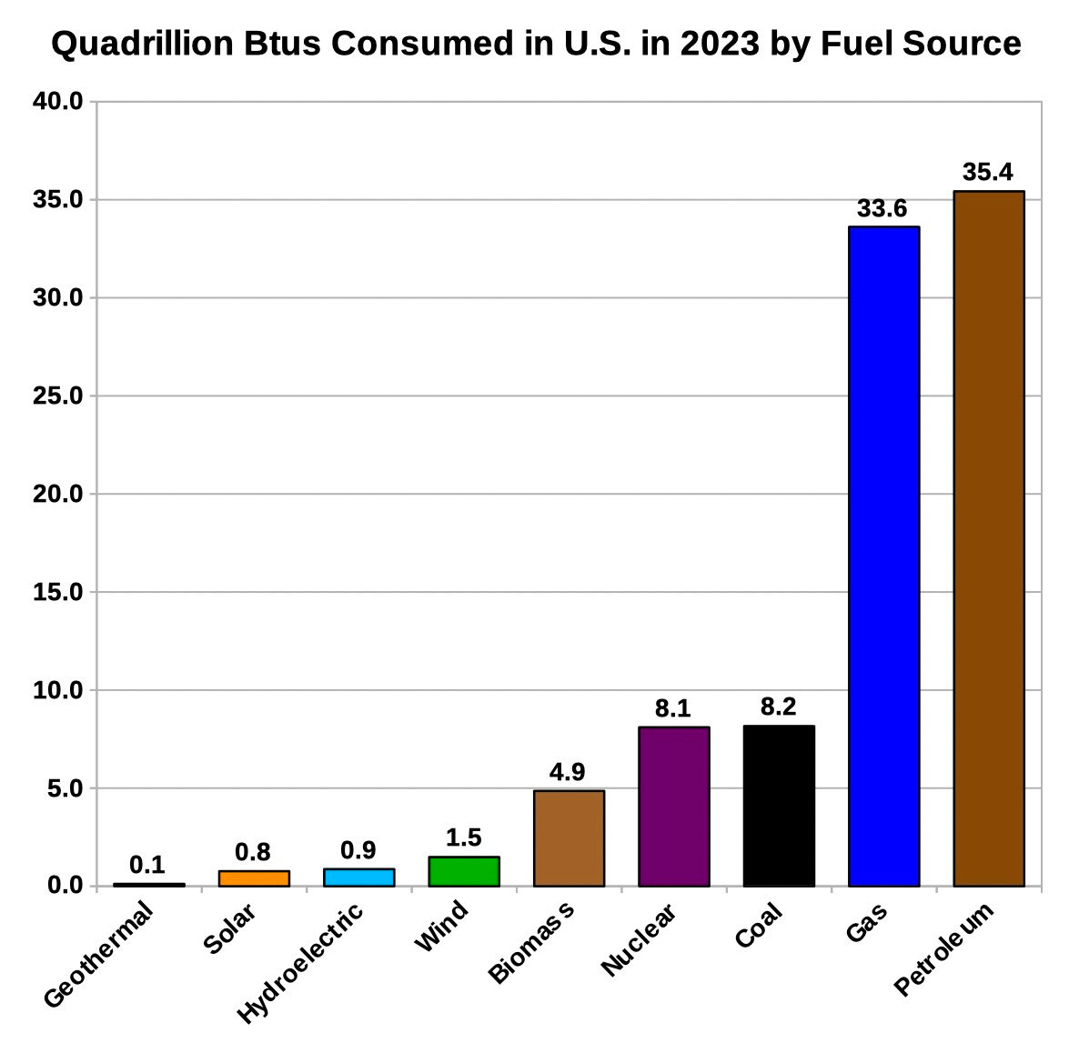 And, one more thing. Here’s the actual contributions of each form of energy consumed by U.S. residents in 2023, according to the EIA table (bear in mind much of the biomass is very smoky wood):