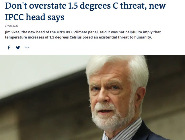 In interviews with German news media over the weekend the new head of the Intergovernmental Panel on Climate Change (IPCC) said it was wrong and misleading for climate activists to imply that temperature increases of 1.5 degrees Celsius posed an existential threat to humanity.