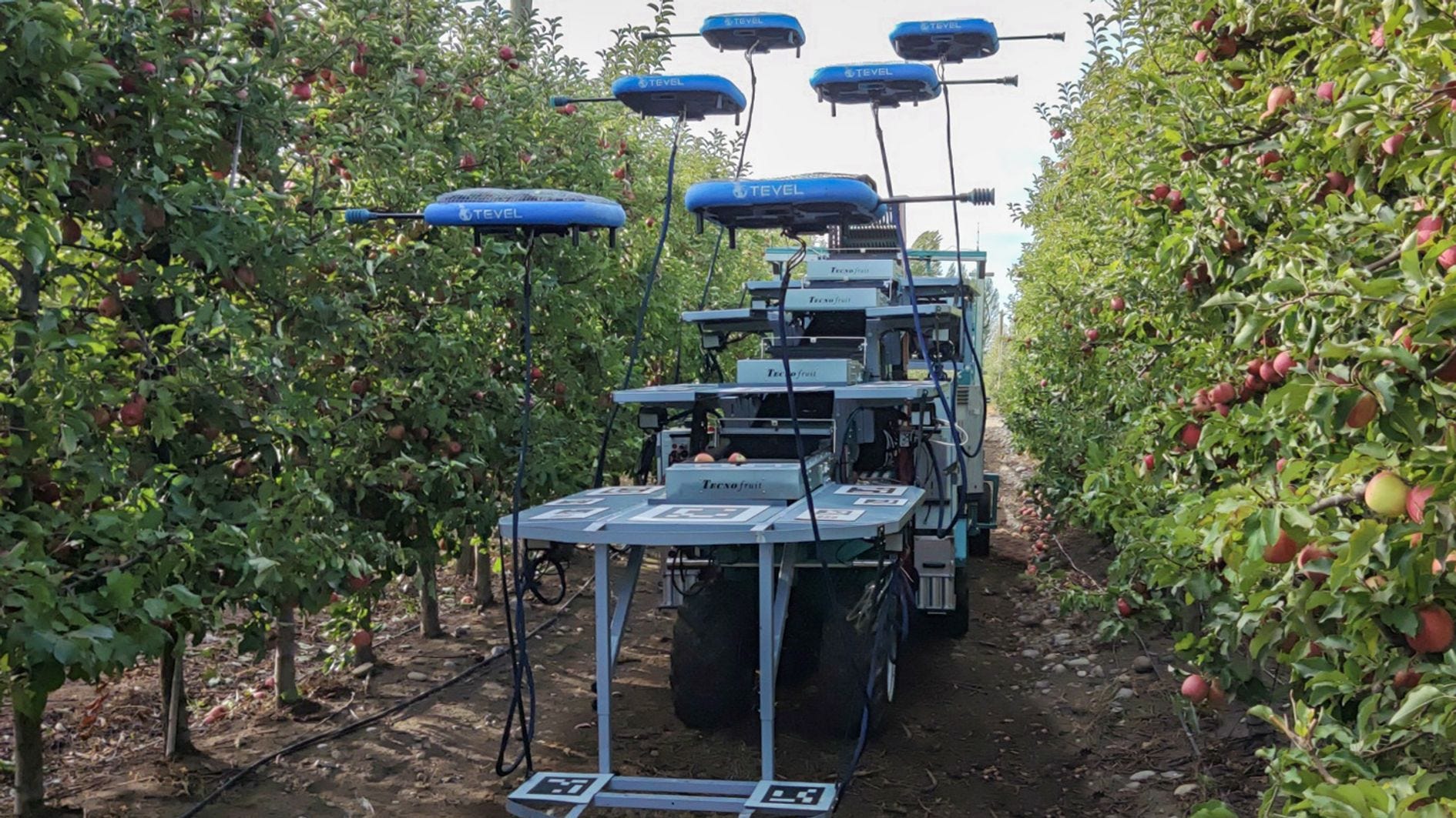 Tevel says its fruit-picking robots can identify ripe fruit by color and size. PHOTO: TEVEL