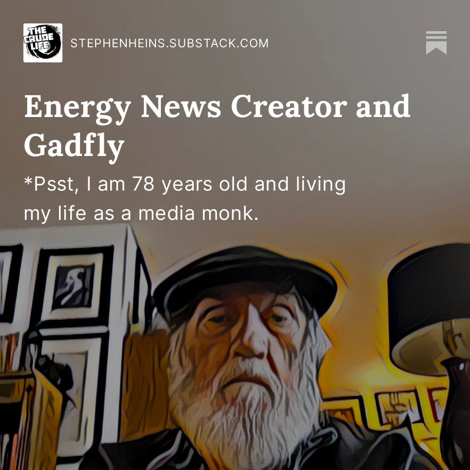I have a link to support my energy and environmental curation, 6.00 a month or $60 a year or simply free. Anyway, given the fact I haven't received any remuneration for several years, I am moving my future work over to stephenheins.Substack.com where I can receive financial support from my readership.