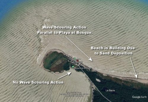 The Climate Realism article also points out that El Bosque is built in possibly the worst location possible, a peninsular sand bar.