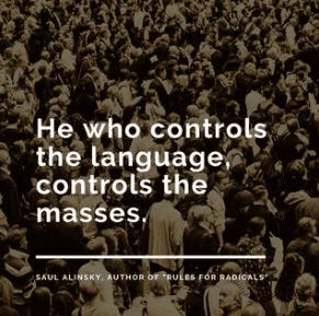 It has become increasingly clear to many who have been paying attention to the tactics of the left that controlling language has become an important tool in superimposing an ideology which shames and punishes those who disagree or resist. As Communist agitator Saul Alinsky says in his book Rules for Radicals (a favorite book of Barack Obama, Hillary Clinton, and Joe Biden), “He who controls the language controls the masses.”