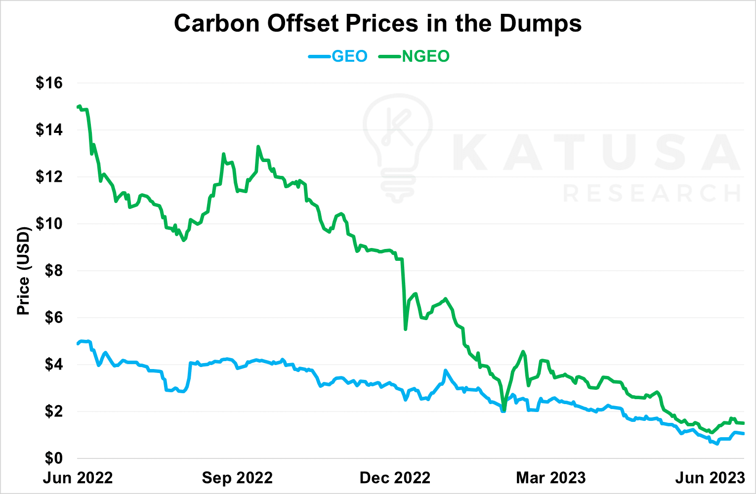 However, there’s one more issue causing downward pressure on carbon offset credit prices that I want to focus on today. But unlike the other causes mentioned previously, this issue originates from entirely within the voluntary carbon markets.