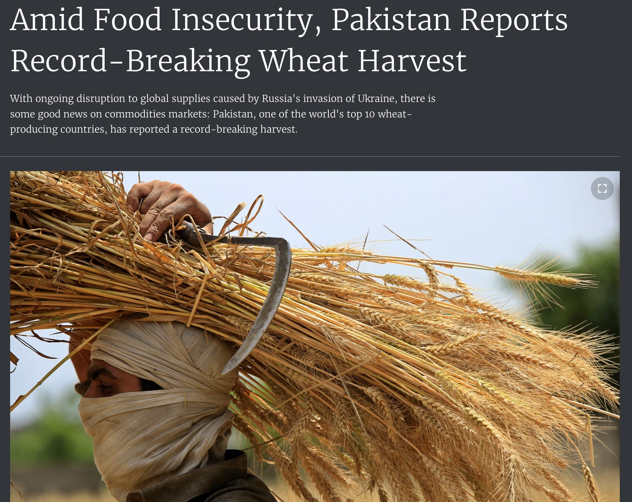 Even Pakistan, which was affected by severe flooding last year, has just reported a record harvest.