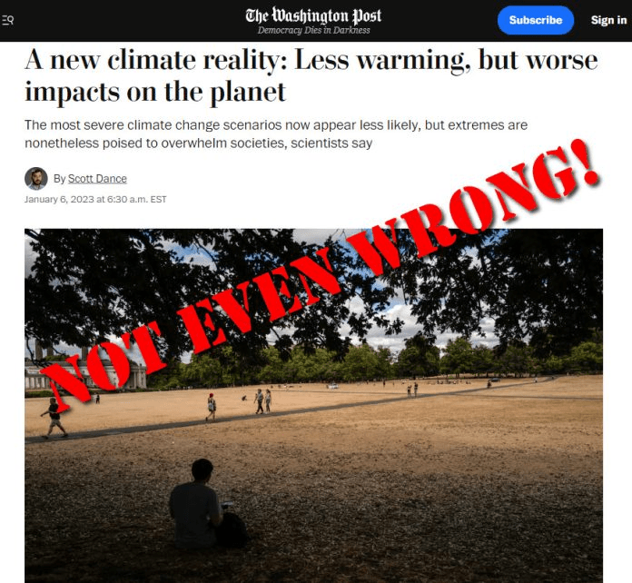 It isn’t often that we here at Climate Realism run across an article that is so erroneous and egregious that it earns the title of “Not even wrong,” but Scott Dance of The Washington Post (WaPo) has managed to do just that with his article: A new climate reality: Less warming, but worse impacts on the planet